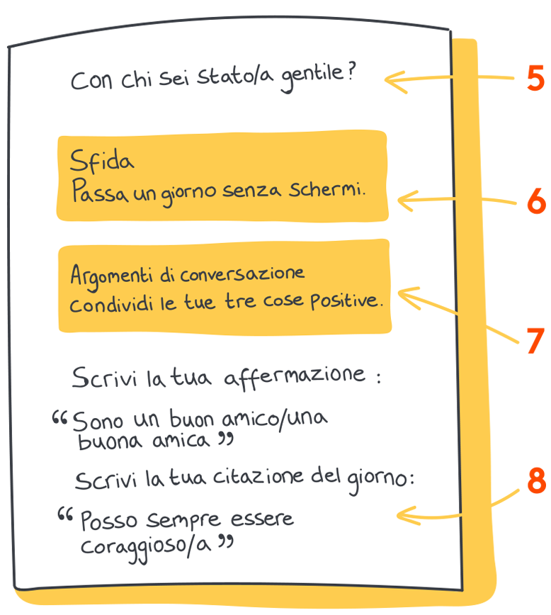 Questi elenchi da spuntare aiutano a ricordare piccoli momenti che favoriscono una mentalità di crescita, incoraggiano la gentilezza, l'amicizia e la consapevolezza di sé